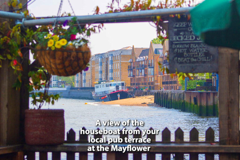 Houseboat ‘Dunregan House’, moored off 145/149 Rotherhithe Street, Rotherhithe, London SE16 5QT with rights to park one car in an off road private parking space.